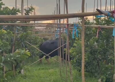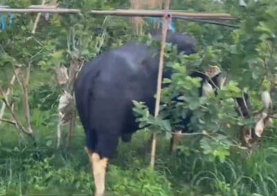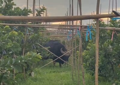 เจ้าทองดี กระทิงดังวังน้ำเขียว เดินกินหญ้าในสวนผลไม้ ชิมฝรั่งหงเป่าสืออย่างสบายใจ