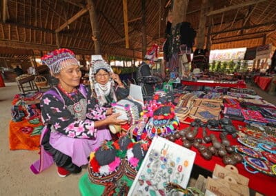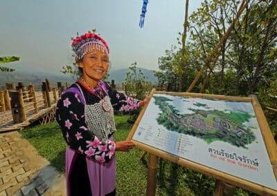 โดยแบ่งพื้นที่การท่องเที่ยวเป็น 3 โซน คือ 1. โซน “กาดหลวงร้อยใจรักษ์” เป็นตลาดขายสินค้าและผลิตภัณฑ์ของพี่น้องชนเผ่าทั้งเสื้อผ้า เครื่องประดับ ผลผลิตทางการเกษตร ข้า ฟักทองญี่ปุ่น มะเขือเทศ ขิง ข่า รวมทั้งดอกเก๊กฮวย เปิดขายทุกวัน ส่วนตลาดนัดชนเผ่าจะมีทุกวันอังคาร วันเสาร์