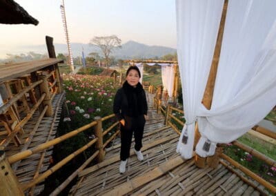 หลากสี มากาเร็ตรูปหัวใจ สลับกับทุ่งดอกหญ้า เดินผ่านสะพานไม้ไฝ่ขึ้นไป ณ จุดชมวิวจะพบกับ “ทะเลบนดอย” ต้นโกงกาง พืชน้ำเค็มยืนเด่นเป็นสง่า ห้อมล้อมไปด้วยลำพูน ลำแพน สร้างสมดุลได้อย่างงดงาม บนจุดชมวิว 360 องศา”