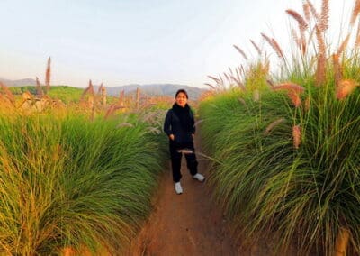 2.โซน “สวนร้อยใจรักษ์” กับทุ่งคอสมอสหลากสีสัน สลับกับสีเหลืองของดอกเก๊กฮวย ดอกหญ้า