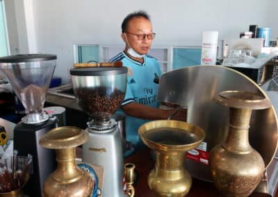 สำคัญที่สุด เล็ก 79 พร้อมเสริฟ และคั้นกาแฟด้วยตนเอง พร้อมแลกเปลี่ยน มุมมอง รสชาดกาแฟ ในทุกๆ เช้า ร้านเปิดตั้งแต่ หกโมงเช้า ปิด ห้าโมงเย็น ริมถนน 304 ขาขึ้นไปกรุงเทพ