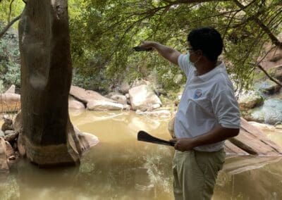 2.ชายสวมเสื้อโปลสีขาว ใส่แว่น คือ นายธีรพงศ์ คณาศักดิ์ ประธานชมรมส่งเสริมการท่องเที่ยวอำเภอสีคิ้ว