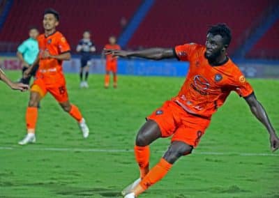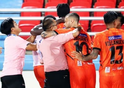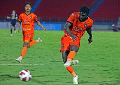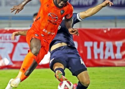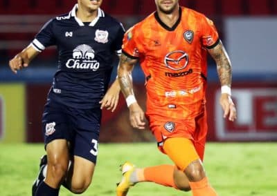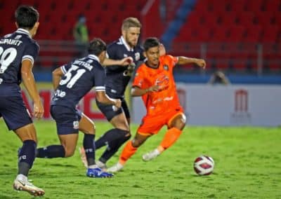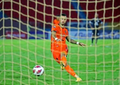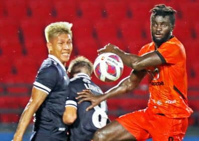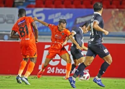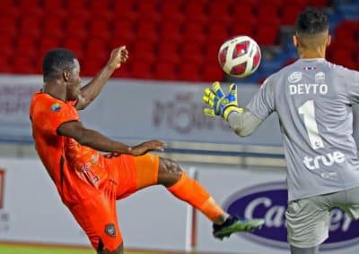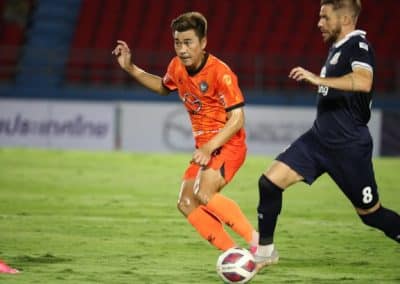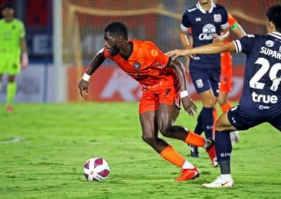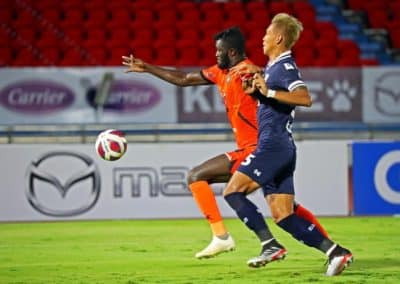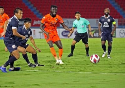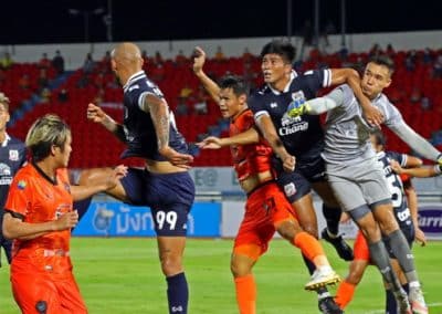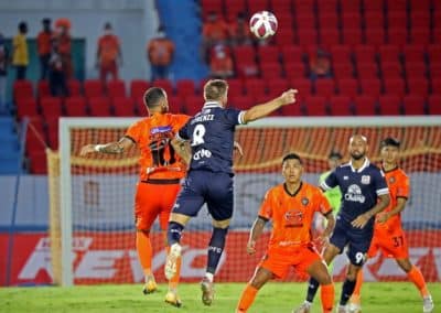 น.11 เป็นโอกาสของเจ้าถิ่นบ้าง เมื่อบอลมาเข้าทาง มาร์โค ซาฮาเน็ค บริเวณกลางประตูแถวหัวกะโหลก ซัดเต็มข้อบอลพุ่งเขาหากรอบประตูแต่ทาง แพทริค เดย์โต้ นายด่านสุพรรณบุรี เอฟซี ไม่เผลอถอยไปปัดข้ามคานได้ทัน