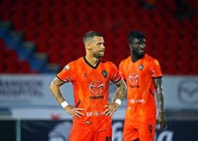 ลงมาเล่นต่อครึ่งหลัง เจ้าบ้านไม่รอช้าเปิดเกมรุกแบบพับสนามทันที น.62 นครราชสีมา มาสด้า เอฟซี ตีเสมอสำเร็จจากจังหวะบอลถูกเปิดจากริมเส้นซ้ายเขาไปในเขตโทษเลยไปเสาสองที่มี อมาดู อ๊อตตาร่า สปีดเข้ามาจะชาร์ท แต่โดนไดซูเกะ ซาโตะ ทีมตามมาสกัดล้มลง ผู้ตัดสินมาดูจอวีเออาร์ ก่อนเป่าเป็นจุดโทษ “มาร์โค ซาฮาเน็ค”รับหน้าที่ยิงไม่พลาดเข้าไปให้นครราชสีมา มาสด้า เอฟซี ตีเสมอ1-1