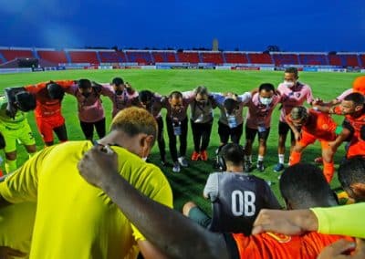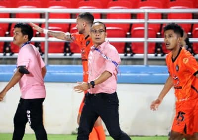 ด้าน อเดบาโย่ กาเดโบ้ กุนซือสุพรรณบุรี เอฟซี กล่าวให้กำลังใจทีมว่า เราทำได้ดีแล้ว แต่มาเสียสมาธิเองในประตูที่สอง เด็กทุกคนสู้เต็มที่แล้ว เสียดายเหมือนกัน เราจะสู้ต่อไป
