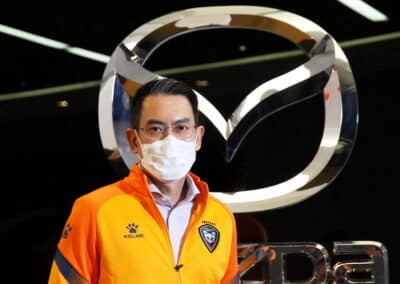 แม้ว่าในปีนี้ ผมและทีมมาสด้าจะไม่สามารถไปพบปะกับทุกท่านได้เหมือนเช่นทุกปี แต่อย่างไรก็ตาม เราขอส่งแรงใจให้ทีมงานและนักเตะทุกท่าน และพร้อมที่จะยืนอยู่เคียงข้างกับทีมสวาทแคทอย่างเต็มที่ เพื่อที่จะสร้างเส้นทางประวัติศาสตร์ครั้งใหม่ในไทยลีก ไปพร้อมๆ กับชาวโคราช