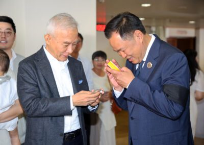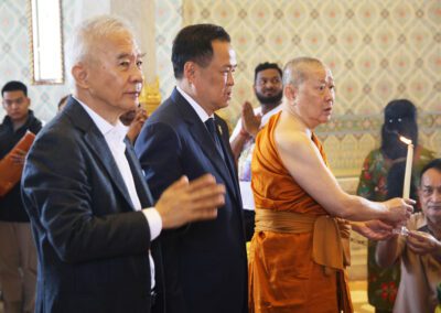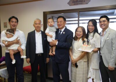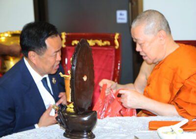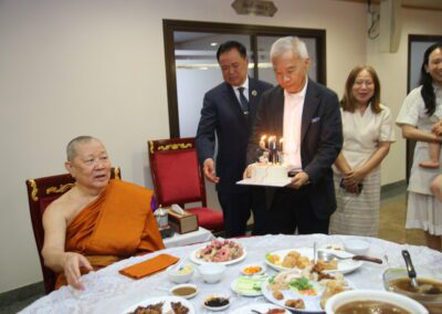 ในพิธีได้มีการนิมนต์ สมเด็จพระพุฒาจารย์ (สนิท ชวนปัญโญ) เจ้าอาวาสวัดไตรมิตรวิทยาราม เจ้าคณะใหญ่หนตะวันออก และกรรมการมหาเถรสมาคม พร้อมด้วย สมเด็จพระมหารัชมงคลมุนี (ธงชัย ธมฺมธโช) ผู้ช่วยเจ้าอาวาสวัดไตรมิตรวิทยารามวรวิหาร เจ้าคณะใหญ่หนกลาง และกรรมการมหาเถรสมาคม โดยมีการทำบุญเลี้ยงพระเพลพระสงฆ์ของวัดไตรมิตรฯ รวม 40 รูป
