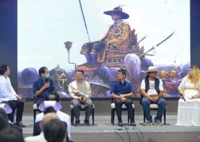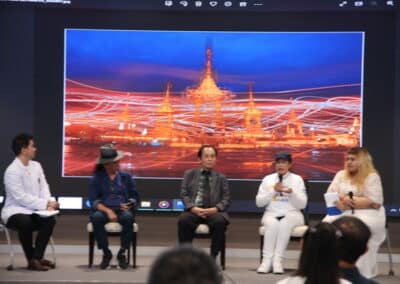 ด้านอาจารย์อำมฤทธิ์ ชูสุวรรณ ศิลปินแห่งชาติ กล่าวว่าเป็นงานที่ตนตั้งต้นความคิดโดยใช้เส้นลวดดันเป็นภาพโดยใช้คอมพิวเตอร์เนื่องจากเรามีแต่เส้นลวดมันก็จะไม่มีเงา ไม่มีมิติ ดังนั้น จะเป็นงานที่เริ่มตั้งแต่เส้นลวดและจากเส้นลวดไปถึงภาพถ่ายและภาพถ่ายแปลงมาเป็นวาดเส้น