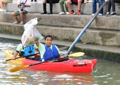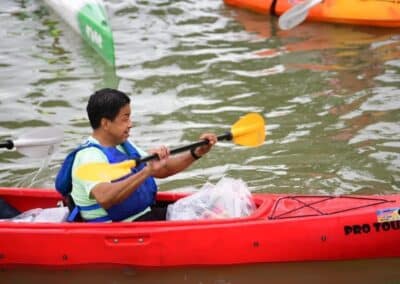 หลังจากนั้น นายชัชชาติได้บีบแตรเพื่อปล่อยขบวนเรือเก็บขยะจำนวน 50 ลำ โดย นายชัชชาติ ลงพายเรือคายัคสีแดงหมายเลข 05 เพื่อสำรวจขยะบริเวณแม่น้ำเจ้าพระยา เป็นเวลากว่า 30 นาที เนื่องจากไม่มีขยะในแม่น้ำ