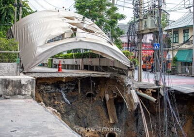 ชัชชาติ แจง ถนนยุบตัวบริเวณก่อสร้างสถานีรถไฟฟ้าสายสีม่วงใต้ บริเวณ รพ.วชิระ ถนนสามเสน เกิดจากอุโมงค์แตก และท่อประปารั่ว