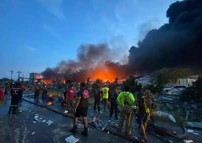 ล่าสุด กรมป้องกันบรรเทาสาธารณภัย สั่งอพยพด่วนประชาชนที่อยู่ใกล้เคียงโรงงานดังกล่าวในรัศมี 5 กิโลเมตร เนื่องจากยังไม่สามารถควบคุมเพลิงได้ ทั้งหมด และหวั่นไฟลามไปติดถังสารเคมี 20,000 ลิตร ที่อยู่ใกล้เคียง