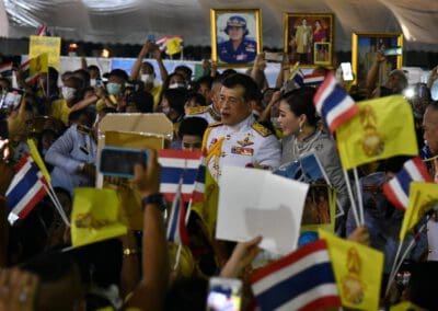 ในหลวง และพระราชินี ทรงเยี่ยมราษฏร บริเวณหน้าวัดพระศรีรัตนศาสดาราม ที่มาเฝ้าทูลละอองธุลีพระบาท