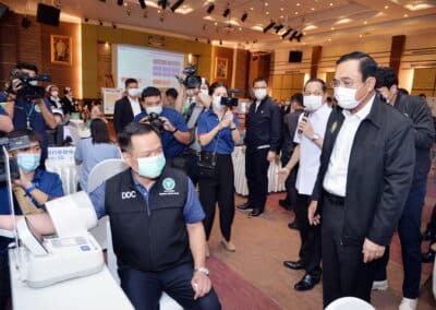 นายกรัฐมนตรีตรวจเยี่ยมการฉีดวัคซีนโควิด – 19 ให้ผู้แทนกลุ่มเป้าหมาย บุคลากรทางการแพทย์ด่านหน้า ครั้งแรกในประเทศไทย ย้ำให้มั่นใจทุกคนได้รับการดูแลที่ได้มาตรฐาน มีประสิทธิภาพ