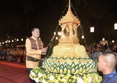 นายกรัฐมนตรี ร่วมสืบสานประเพณีลอยกระทง เผาเทียน เล่นไฟ และพิธีลอยประทีปพระราชทาน จังหวัดสุโขทัย พร้อมชมการแสดงพลุ ตะไล ไฟพะเนียง ณ อุทยานประวัติศาสตร์สุโขทัย ร่วมสืบสานวัฒนธรรมประเพณีไทย ชูเป็น Soft Power ขับเคลื่อนเศรษฐกิจระดับพื้นที่