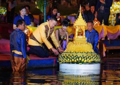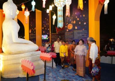 ในการนี้ ปลัดกระทรวงวัฒนธรรม ได้อัญเชิญพระประทีปพระราชทาน สมเด็จพระเจ้าน้องนางเธอ เจ้าฟ้าจุฬาภรณวลัยลักษณ์ อัครราชกุมารี กรมพระศรีสวางควัฒน วรขัตติยราชนารี ลงลอย และร่วมลอยกระทง ร่วมกิจกรรมเล่นไฟ พร้อมชมการแสดงชุดตำนานท้าวศรีจุฬาลักษณ์และชมการแสดงพลุ ตะไล ไฟพะเนียง ณ ตระพังตะกวน อุทยานประวัติศาสตร์สุโขทัย พร้อมทั้งเยี่ยมชมลานจำลองวิถีชีวิต หมู่บ้านวิถีไทย งานประเพณีลอยกระทง เผาเทียน เล่นไฟ จังหวัดสุโขทัย ประจำปี 2566 ณ บริเวณศาลาสี่หลัง อุทยานประวัติศาสตร์สุโขทัย จังหวัดสุโขทัย