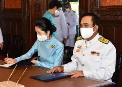 วันเดียวกัน ณ ห้องแดง อาคารหน่วยราชการในพระองค์ 904 ในพระบรมมหาราชวัง นายกฯและภริยา ลงนามถวายพระพรสมเด็จพระนางเจ้าสิริกิติ์ พระบรมราชินีนาถ พระบรมราชชนนีพันปีหลวง เนื่องในโอกาสวันเฉลิมพระชนมพรรษา ประจำปีพุทธศักราช 2563 โดยมีรองนายกรัฐมนตรีและภริยา เข้าร่วมพิธี