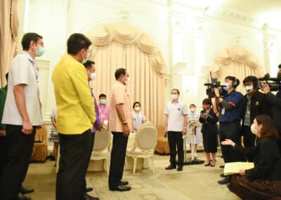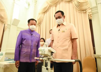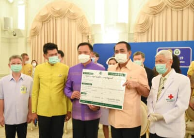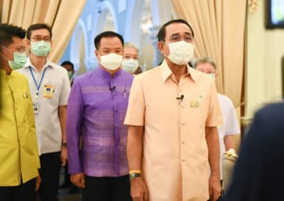 วันที่ 16 มีนาคม 2564 พล.อ.ประยุทธ์ จันทร์โอชา นายกรัฐมนตรี นำคณะรัฐมนตรี ฉีดวัคซีนโควิด-19 สร้างความมั่นใจ ขอบคุณคณะแพทย์และเจ้าหน้าที่ทุกภาคส่วนในการจัดหาวัคซีนเพื่อคนไทย (รวมไทยสร้างชาติ)