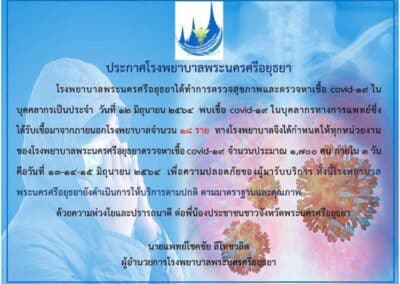 ขอยืนยืนในความปลอดภัยของประชาชนที่มาเข้ารับบริการที่โรงพยาบาลพระนครศรีอยุธยา สามารถควบคุมการแพร่ระบาดได้ ซึ่งอยู่เฉพาะในกลุ่มของเจ้าหน้าที่ส่วนหนึ่งเท่านั้น