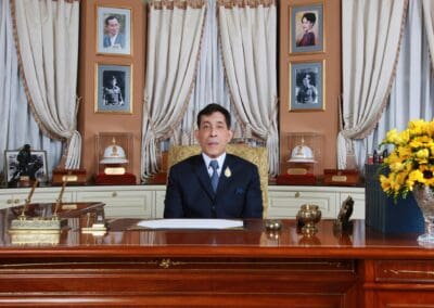 ความงาม และความเจริญทั้งปวง ความมั่นคงหนักแน่นในความถูกต้อง ด้วเหตุผลและความจริง แล้วช่วยกันสืบสานรักษาให้ดำรงอยู่ไม่ขาดสาย และสร้างเสริมต่อยอดให้รุ่งเรืองไพบูลย์ยิ่ง ๆ ขึ้น พร้อมทั้งตั้งตัวตั้งใจให้มั่นคงแน่วแน่ ที่จะประพฤติตนปฏิบัติงานให้ดีให้ถูกต้อง ด้วยความมีสติรู้ตัว และด้วยปัญญารู้เหตุรู้ผล. แม้ประเทศจะตกอยู่ในสภาวะที่ต้องเผชิญกับโรคภัยไข้เจ็บเบียดเบียน