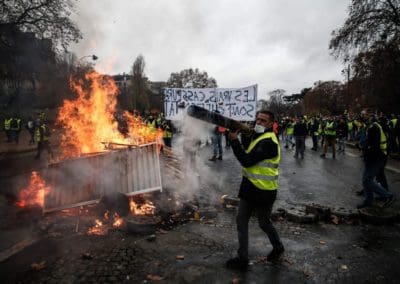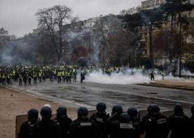 ขณะที่รอยเตอร์ส รายงานว่า ผู้ประท้วงส่วนหนึ่งก่อเหตุจลาจลครั้งใหญ่ในกรุงปารีส ทั้งทุบรถ และอาคาร บุกปล้นร้านค้า ทุบประตูหน้าต่าง และปะทะกับเจ้าหน้าที่ตำรวจ ซึ่งนับว่าเป็นเหตุการณ์ความไม่สงบครั้งรุนแรงที่สุดในกรุงปารีส
