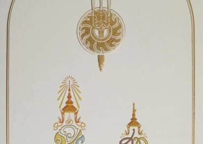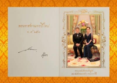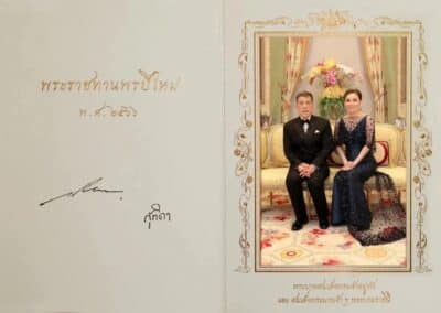 ด้านขวา มีพระบรมฉายาลักษณ์พระบาทสมเด็จพระเจ้าอยู่หัว ที่ทรงฉายกับสมเด็จพระนางเจ้าฯ พระบรมราชินี ใต้พระบรมฉายาลักษณ์ระบุพระปรมาภิไธย “พระบาทสมเด็จพระเจ้าอยู่หัว” และพระนามาภิไธย “สมเด็จพระนางเจ้าฯ พระบรมราชินี”