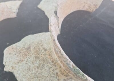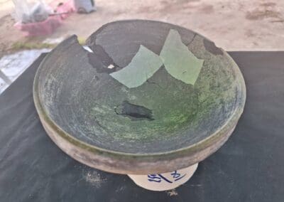 เมื่อขุดตรวจลึกลงไปจนถึงระดับความลึก 180 เซนติเมตร จากผิวดินปัจจุบัน หลักฐานทางโบราณคดีที่พบในครั้งนี้ กำหนดอายุเบื้องต้นอยู่ในช่วง 1,500-2,500 ปีมาเเล้ว ประกอบด้วย โครงกระดูกมนุษย์ในลักษณะนอนหงายเหยียดยาว จำนวน 1 โครง สภาพสมบูรณ์ ศรีษะหันไปทางทิศตะวันตก ปลายเท้าหันไปทางทิศตะวันออก ตลอดจนพบกลุ่มภาชนะดินเผาเนื้อดินธรรมดา เเละภาชนะแบบพิมายดำ สำนักศิลปากรที่ 10 จะดำเนินการส่งตัวอย่างไปหาค่าอายุสมัยทางวิทยาศาสตร์ต่อไป