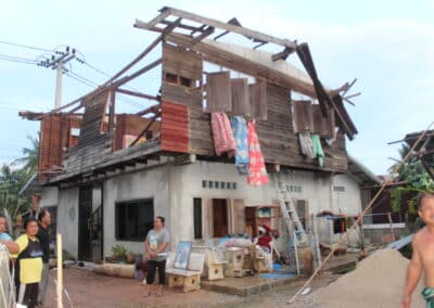 โดยเฉพาะบ้านของนางนันทนิตย์ เกียรติสูงเนิน อายุ 52 ปี เลขที่ 75 / 1 ซึ่งอยู่ในหมู่บ้านสวนหอมหมู่ที่ 14 ถูกลมพายุพัดทั้งหลังคาและฝาบ้านบริเวณชั้น 2 ของตัวบ้านปลิวหายและพังถล่มลงมาเกือบหลัง ซึ่งนางนันทนิตย์ฯ บอกว่า ถือเป็นเหตุการณ์ที่รุนแรงที่สุดเท่าที่เคยประสบมา และยังไม่รู้ว่าจะหาเงินจากไหนมาซ่อมแซมบ้านที่พังเกือบทั้งหลังเช่นนี้ เบื้องต้นในวันนี้ ต้องพาครอบครัวไปอาศัยอยู่กับบ้านญาติไปพลางๆ ก่อน จึงอยากวอนหน่วยงานที่เกี่ยวข้องเร่งเข้ามาให้การช่วยเหลืออย่างเร่งด่วน ซึ่งทางเจ้าหน้าที่องค์การบริหารส่วนตำบลตูม ได้ส่งเจ้าหน้าที่ออกสำรวจความเสียหายเพื่อเตรียมให้การช่วยเหลือตามระเบียบของทางราชการเป็นการเร่งด่วนแล้ว