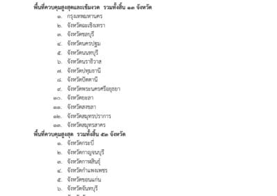 ข้อ 2 การปรับปรุงเขตพื้นที่จังหวัดตามพื้นที่สถานการณ์ กําหนดปรับปรุงเขตพื้นที่ควบคุมสูงสุดและเข้มงวดขึ้นใหม่เพื่อให้สอดคล้องกับสถานการณ์ ได้แก่ กรุงเทพมหานคร จังหวัดนครปฐม จังหวัดนนทบุรี จังหวัดปทุมธานี จังหวัดสมุทรปราการ จังหวัดสมุทรสาคร จังหวัดฉะเชิงเทรา จังหวัดชลบุรี จังหวัดพระนครศรีอยุธยา และจังหวัดชายแดนภาคใต้ ได้แก่ จังหวัดนราธิวาส จังหวัดปัตตานี จังหวัดยะลา และจังหวัดสงขลา โดยให้ศูนย์บริหารสถานการณ์การแพร่ระบาดของ โรคติดเชื้อไวรัสโคโรนา 2019 (โควิด – 19) (ศบค.) มีคําสั่งปรับปรุงเขตพื้นที่จังหวัดจําแนก ตามเขตพื้นที่สถานการณ์เสียใหม่ และให้นํามาตรการควบคุมแบบบูรณาการที่กําหนดไว้สําหรับพื้นที่ สถานการณ์ระดับต่าง ๆ ข้อห้าม และข้อปฏิบัติตามข้อกําหนด (ฉบับที่ ๒๔) ลงวันที่ ๑๙ มิถุนายน พ.ศ. ๒๕๖๔ ข้อกําหนด (ฉบับที่ ๒๕) ลงวันที่ ๒๖ มิถุนายน พ.ศ. ๒๕๖๔ และข้อกําหนด (ฉบับที่ ๒๗) ลงวันที่ ๑๐ กรกฎาคม พ.ศ. ๒๕๖๔ มาใช้บังคับเท่าที่ไม่ขัดหรือแย้งกับข้อกําหนดนี้