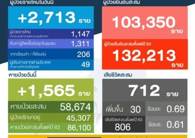 โควิดวันนี้ ป่วยใหม่ 2,713 ราย สะสม 132,213 ราย เสียชีวิตเพิ่ม 30 คน สะสม 806 คน ขณะที่ยอดผู้ฉีดวัคซีนอยู่ที่ 2,910,664
