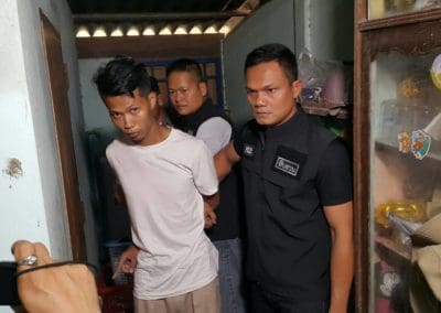 ขณะเดียวกันทีมสอบสวนสืบสวน สภ.ดอนเจดีย์ ได้นำตัวผู้ต้องสงสัย ที่มีอายุระหว่าง 20-30 ปี ซึ่งเป็นคนในพื้นที่มาสอบสวน ตรวจสอบประวัติพิมพ์ลายนิ้วมือ เก็บตัวอย่าง DNA. ทั้งหมด 6 ราย แต่ยังไม่พบพิรุธจึงได้ปล่อยตัวไปชั่วคราว พร้อมทั้งส่งทีมประกบตัวคอยสังเกตความเคลื่อนไหวของผู้ต้องสงสัยทั้งหมดอย่างใกล้ชิด ส่วนรองเท้าแตะของคนร้ายที่ทิ้งในที่เกิดเหตุไว้ 1 คู่ ได้ส่งตรวจยังเจ้าหน้าที่กองพิสูจน์หลักฐาน พฐ.7 (ภ.จว.สุพรรณบุรี) ตรวจหา DNA.เพื่อมาเปรียบเทียบกับ DNA. ของผู้ต้องสงสัย