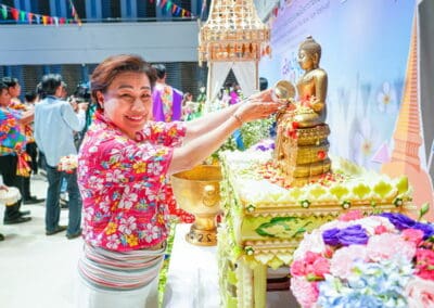 ปลัดกระทรวงวัฒนธรรม กล่าวอีกว่า ขณะเดียวกันในส่วนของกระทรวงวัฒนธรรม(วธ.) จัดงานประเพณีสงกรานต์ทั้งในกรุงเทพฯ ซึ่งวธ.สนับสนุนการจัดกิจกรรมสงกรานต์ไทยทั้ง 50 เขต และเพิ่มอีก 2 พื้นที่ ได้แก่ สีลม และสยามสแควร์ โดยจัดกิจกรรมหลักที่วัดสุทัศนเทพวราราม นำเสนอกิจกรรมที่อนุรักษ์และสืบสานประเพณี ได้แก่ ทำบุญตักบาตร สรงน้ำพระ รดน้ำดำหัว ก่อเจดีย์ทราย เป็นต้น และส่วนภูมิภาค 5 จังหวัด ได้แก่ เชียงใหม่ ขอนแก่น สมุทรปราการ ชลบุรีและภูเก็ต มุ่งเน้นกิจกรรมสืบสานประเพณีวัฒนธรรมสื่อถึงอัตลักษณ์ของแต่ละภูมิภาค อาทิ ขบวนแห่ประเพณีสงกรานต์ สักการะและสรงน้ำพระพุทธรูปคู่บ้านคู่เมือง ทำบุญสรงน้ำพระ การแสดงศิลปวัฒนธรรม การละเล่นพื้นบ้านวิถีถิ่น ตลาดวัฒนธรรม 1 จังหวัด 1 เมนู เชิดชูอาหารถิ่น เป็นต้น พร้อมกันนี้ได้กำชับให้สวจ.จังหวัดต่างๆที่มีการจัดงานประเพณีสงกรานต์ให้เน้นกิจกรรมการสืบสาน อนุรักษ์ขนบธรรมเนียมประเพณีอันดีงามและเผยแพร่คุณค่า สาระที่งดงามของสงกรานต์ไทยที่แสดงออกถึงความรัก ความกตัญญูรู้คุณ ความอ่อนโยน และความสนุกสนานรื่นเริง รวมทั้งขอความร่วมมือให้ทุกจังหวัดทั่วประเทศที่จัดกิจกรรมเทศกาลสงกรานต์ รณรงค์คนไทยแต่งกายผ้าไทย ใส่เสื้อลายดอก ซึ่งเป็นการแสดงให้เห็นอัตลักษณ์ของการแต่งกายในช่วงเทศกาล และเป็นเจ้าบ้านที่ดีในการต้อนรับนักท่องเที่ยว พร้อมรณรงค์เรื่องความปลอดภัย การใช้น้ำสะอาด งดใช้แป้ง สี อุปกรณ์ฉีดน้ำแรงดันสูง ไม่ถือโอกาสนี้กระทำการลวนลามทั้งผู้หญิงและผู้ชาย จนทำให้เกิดความเสื่อมเสียต่อภาพลักษณ์ของประเทศไทย
