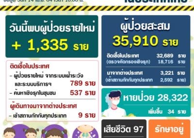 วันนี้ ไทยพบติด‘โควิด’ 1,335 ราย ยอดรวมสะสม 35,910 ราย