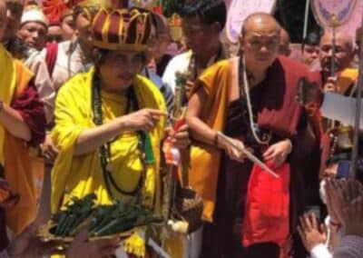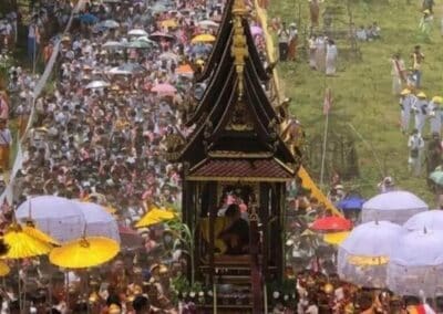 บรรยากาศบริเวณหน้าถ้ำเมืองแก๊ด รัฐฉาน ประเทศเมียนมา ลูกศิษย์ผู้ศรัทธา และประชาชนต่างมารอรับครูบาบุญชุ่ม ออกมาจากถ้ำหลวงเมืองแก๊ด โดยได้เข็นเสลี่ยงหรือราชรถไปใกล้กับบริเวณหน้าถ้ำ เพื่อรอรับครูบาบุญชุ่มออกกจากถ้ำ