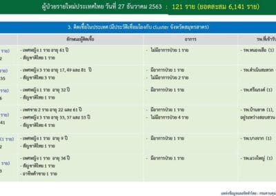 รายละเอียดสำหรับผู้ติดเชื้อรายใหม่ 121 ราย