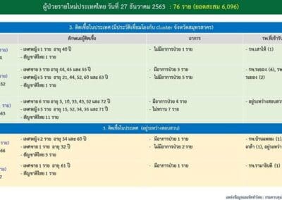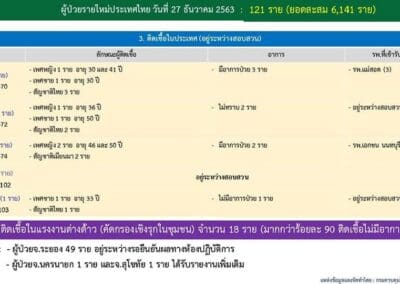 ข้อมูล ณ วันที่ 27 ธันวาคม 2563