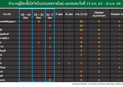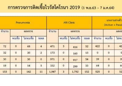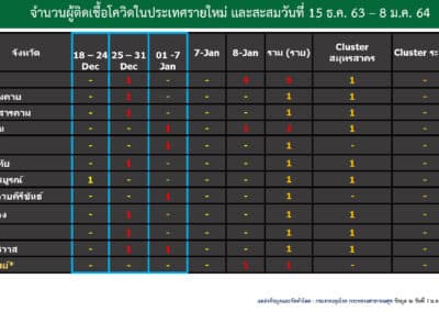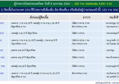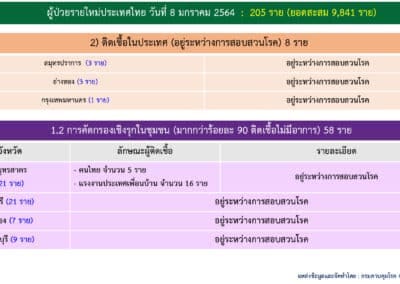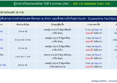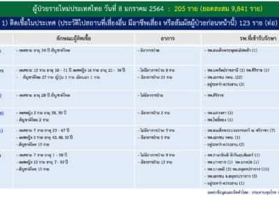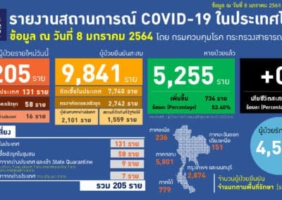 สถานการณ์การติดเชื้อ COVID-19 วันศุกร์ที่ 8 มกราคม 2564 Posted by Admin | Jan 8, 2021 | ข่าวประจำวัน วันศุกร์ที่ 8 มกราคม 2564 สถานการณ์การติดเชื้อ COVID-19 ผู้ป่วยรายใหม่ 205 ราย ผู้ป่วยยืนยันสะสม 9,841 ราย หายป่วยแล้ว 5,255 ราย เสียชีวิตสะสม 67 ราย Post Views: 24 FacebookFacebookXTwitterLINELine