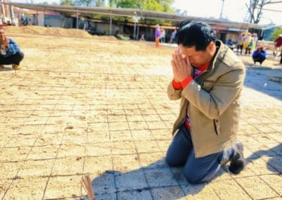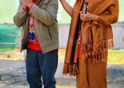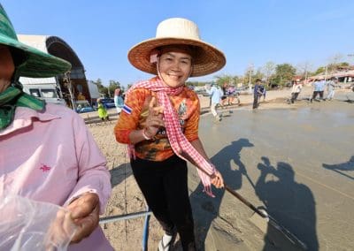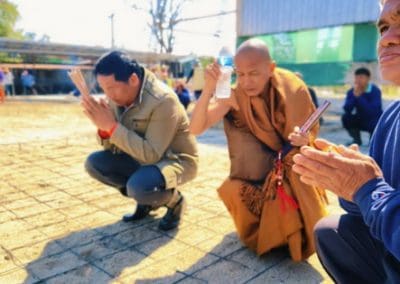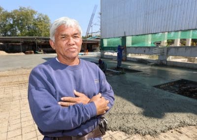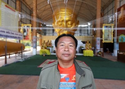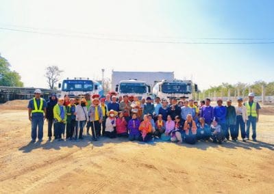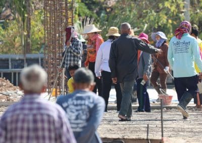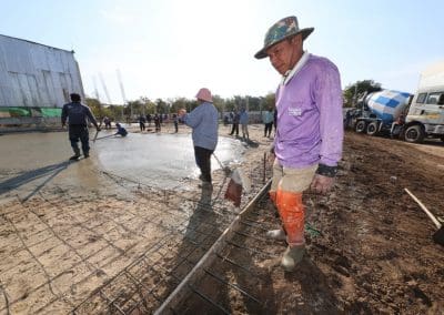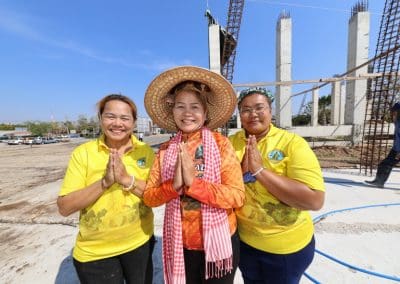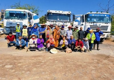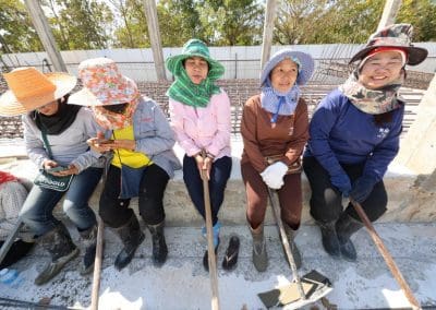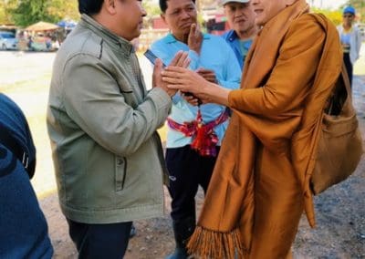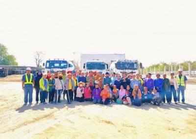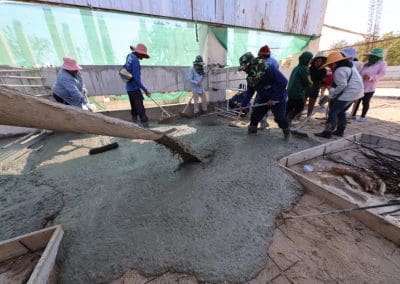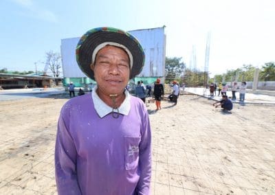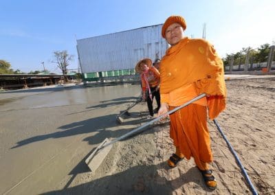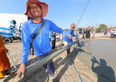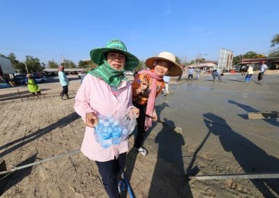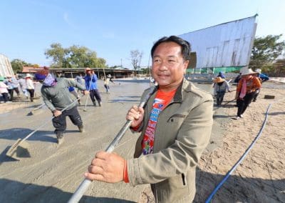 อย่างวันนี้ การทำกิจกรรมครั้งนี้ ไม่ใช่เฉพาะชาวบ้านไร่เท่านั้น แต่มีบ้านใกล้เรือนเคียง หมู่บ้านต่างๆ เมื่อทราบข่าวว่าเราจะทำกิจกรรมตรงนี้ ทุกท่านก็มาแจ้งความจำนง แจ้งความประสงค์ว่าอยากจะเอาแรงกายมาช่วย เพราะว่าทุกท่าน คือ มาด้วยความเคารพศรัทธา พระเดชพระคุณหลวงพ่อคูณ ปริสุทโธ พอรู้ว่าเรามีกิจกรรมดีๆ อย่างนี้ ส่งข่าวถึงเขาก็อยากมาร่วมบุญกับเราวันนี้ชาวบ้านมาร่วมบุญ 70 คนในการเทลานปูนครั้งที่ 2