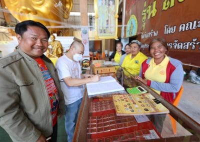 ตอนนี้มีผู้ร่วมบริจาคมาแล้ว ประมาณห้าสิบแผ่นได้ ก็ขอเชิญชวนลูกศิษย์ ลูกหา ลงพ่อทุกท่าน ที่เคารพศรัทธาต่อ พระเดชพระคุณ หลวงพ่อคูณ ก็มาร่วมบุญกัน เป็นครั้งหนึ่งในชีวิต ท่านได้มาร่วมประวัติศาสตร์กับเรา รายชื่อที่ท่านบริจาคมา เราจะจดชื่อท่านเอาไว้ เมื่อโครงการฯดำเนินการไปได้สัก 90 เปอร์เซ็นต์ เราก็จะสลักชื่อของท่านไว้ในแผ่นศิลาจาริก ประวัติศาสตร์ไว้ใต้องค์หลวงพ่อคูณองค์ใหญ่ เพื่อเป็นประวัติศาสตร์ ให้ลูกหลานเหลนโหลดของท่าน ได้เห็นว่าปู่ย่าตายายของท่าน ครั้งหนึ่งได้ร่วมบุญใหญ่ บุญประวัติศาสตร์กับวัดบ้านไร่