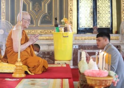 การนี้ ทรงบำเพ็ญพระกุศลถวายจตุปัจจัยไทยธรรม ทรงสนทนาธรรม และทรงสดับพระโอวาทที่เจ้าพระคุณ สมเด็จพระสังฆราช ทรงรับพระราชทานถวายวิสัชนาสนองพระปุจฉา แล้วเจ้าพระคุณ สมเด็จพระสังฆราช ถวายพระนิรันตรายและสำรับหนังสือเป็นที่ระลึก