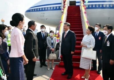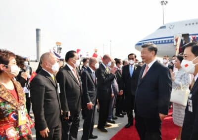 เมื่อสักครู่ที่ผ่านมา พล.อ.ประยุทธ์ จันทร์โอชา นายกรัฐมนตรีและรมว.กลาโหม พร้อมด้วยนางนราพร จันทร์โอชา ภริยา ต้อนรับ นายสี จิ้นผิง (H.E. Mr. Xi Jinping) ประธานาธิบดีแห่งสาธารณรัฐประชาชนจีน และภริยา ที่ท่าอากาศยานสุวรรณภูมิ อ.บางพลี จ.สมุทรปราการ ในโอกาสที่ประธานาธิบดีของจีน เข้าร่วมการประชุม ผู้นำเขตเศรษฐกิจเอเปค (APEC 2022) ที่ประเทศไทยเป็นเจ้าภาพ