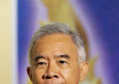 ฉะนั้น วันนี้ผมคิดว่า มันเป็นวันเวลาที่คนไทยต้องเสียสละ ด้วยความรักชาติบ้านเมือง เสียสละทุนทรัพย์ แล้วเราก็จะสามารถประคองให้เราอยู่กันได้ ยังไม่จมน้ำเหมือนเกาะข่อนไม้ ร่วมกันเกาะเอาไว้ก่อน แต่เมื่อพ้นแล้ว ผมเชื่อว่าวันเวลาแห่งความยิ่งใหญ่ของคนไทยรออยู่แล้ว ขอให้คนไทยรักกัน และมีความรักและความสามัคคี
