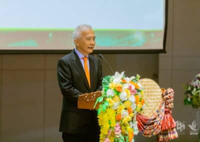 นายสุวัจน์ กล่าวว่าวันนี้มีอยู่สามเรื่อง คือ 1.เรื่องเกษตร 2.เรื่องท่องเที่ยว 3.เรื่อง soft power ประเทศไทยเข้มแข็งมากเรื่องเกษตร เพราะเราเป็นประเทศผลิตผลทางด้านการเกษตรที่ยิ่งใหญ่ แล้วเป็นผลผลิตทางด้านการเกษตรที่มีความสําคัญต่อการผลิตอาหารป้อนโลก ในวันที่ประชากร 8,000 ล้านคน แต่การขาดแคลนอาหารหรือความไม่มั่นคงทางด้านอาหารมากขึ้น เพราะโลกร้อน แผ่นดินน้อยลง คนเยอะขึ้น อาหารขาดแคลน ฉะนั้น คนที่มีผลผลิตทางการเกษตรจะเป็นผู้ครองโลก ประเทศไทยเป็นประเทศเกษตร ปลูกข้าว ปลูกอ้อย ปลูกมัน ปลูกยางพารา ขายเป็นวัตถุดิบอย่างเดี่ยว วันนี้เราต้องคิดเปลี่ยนเอาพื้นฐานเกษตรมาเป็นอุตสาหกรรม มาเป็นการแปรรูปเป็นมูลค่าเพิ่มยกระดับสินค้าการเกษตรและสร้างความยังยืนให้กับประเทศ นี่คือ จุดแข็งมากๆ ควรที่จะเป็นวาระแห่งชาติ หรือเป็นวาระของมหาวิทยาลัย ที่จะได้เข้าไปซัพพอร์ต หรือต่อยอดภาคเกษตรให้เกิดความเข้มแข็งต่อเนื่อง
