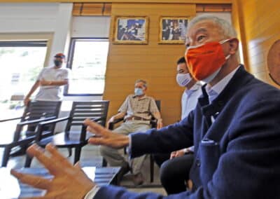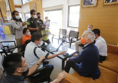 …วันนี้ ศูนย์คนโคราชรักจริงไม่ทิ้งกัน ก็เลยมีการจัดตั้งอาสาสมัครเพื่อให้บริการพี่น้องประชาชน ในการที่จะประสานงานและช่วยเหลือ ผู้ประสบภัยโควิด และประสานงานในการลงทะเบียนในเรื่องหมอพร้อม เพื่ออำนวยความสะดวก เพื่อให้พี่น้องประชาชนได้เข้าถึงวัคซีนได้ และเรายังมีหน่วยบริการเคลื่อนที่เป็นรถตู้ รถปิกอัพ 5 – 6 คัน ออกให้บริการประสานงานในการให้ความช่วยเหลือ และประสานงานในการลงทะเบียนหมอพร้อม ทั่วจังหวัดนครราชสีมา เพื่อคนไทยทุกคนจะต้องได้รับการฉีดวัคซีน เพราะวัคซีนเป็นทางออกของโควิด” นายสุวัจน์ กล่าวและย้ำว่า
