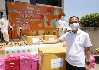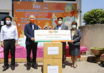 ได้เดินทางไปมอบ ดิจิทัล เทอร์โมมิเตอร์ ให้กับศูนย์บริการสาธารณสุข , ส่วนส่งเสริมสาธารณสุข และกองสวัสดิการสังคม เทศบาลนครนครราชสีมา กับมอบชุด PPE และเฟสชิลด์ ให้แก่มูลนิธิหลักเสียงเซี่ยงตึ๊ง สว่างเมตตาธรรมสถาน และมูลนิธิพุทธธรรม ฮุก 31 นครราชสีมา ก่อนจะเดินทางไปมอบถุงน้ำใจและหน้ากากอนามัยให้กับผู้ที่ถูกกักตัว และได้รับผลกระทบจากโรคโควิด-19 จำนวน 29 ครอบครัว ในหมู่บ้านหนองหญ้างาม ต.หนองกระทุ่ม อ.เมืองนครราชสีมา และ 11 ครอบครัวในหมู่บ้านโนนไม้แดง ต.สุรนารี อ.เมืองนครราชสีมา จ.นครราชสีมา