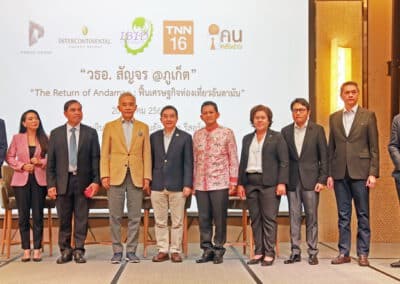 นายภูมิกิตติ์ รักแต่งาม นายกสมาคมธุรกิจท่องเที่ยวจังหวัดภูเก็ต นางสาวัน ตัน รองประธานอุตสาหกรรมภาคใต้ นายแอนโทนี่ ลาร์ค ประธานสมาคมโรงแรมภูเก็ต