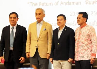 และหลังจากงานเราได้ทำรายงานให้ท่านนายกรัฐมนตรี และท่านได้ตอบรับว่าได้รับแล้ว และได้ส่งผลของการสัมนาไปให้ทางกรมสภาพัฒนาธุรกิจและสังคมแห่งชาติ และหน่วยงานที่เกี่ยวข้องรับไปพิจารณา ซึ่งเราคิดว่าปัญหาไม่ใช่มีแต่กรุงเทพฯ ถ้าเราสามารถสัญจรไปหัวเมืองต่างๆ ซึ่งหัวเมืองต่างๆ มีเศรษฐกิจ มีธุรกิจที่แตกต่างกันไป อย่างทางภาคใต้ แน่นอนถ้านึกถึงภาคใต้ ต้องนึกถึงภาคการท่องเที่ยว ถ้าภาคอีสานก็จะเป็นเรื่องภาคการเกษตร เราได้พูดคุยกันในคณะกรรมการมูลนิธิฯ ว่าเราลงพื้นที่พูดคุยในแต่ละภูมิภาคกันไปเลย เช่นภาคใต้เรื่องท่องเที่ยวก็คิดว่า มาท่องเที่ยวกับ วธอ.สัญจร เพราะนักท่องเที่ยวที่มาเที่ยวภาคใต้ 30 ล้านกว่าบ้านคน ไม่ใช่ภูเก็ต ที่เดียวที่สวยงาม ตรัง ระนอง พังงา กระบี่ สุราษฏร์ธานีก็สวยงาม แต่ตอนนี้เราอยู่ฝั่งทะเลอันดามันมีความสวยสด งดงาม และอันดามันจะกลับมาหลังโควิด ก็เลยใช้คำว่า “The Return Of Andaman” คือ อันดามันตอนนี้อาจจะซบเซา แต่หลังโควิด อันดามันจะกลับมายังไง และด้วยวิธีการอย่างไร เราได้เชิญหัวหน้าส่วนราชการ เช่น ผู้ว่าราชการจังหวัด 3 จังหวัด คือ ภูเก็ต พังงา กระบี่ มาร่วมให้ความคิดเห็น และขณะเดียวกันก็มีส่วนกลางราชการ เช่น การท่องเที่ยว นักอุตสาหกรรมการบิน อย่างแอร์เอเชีย ซึ่งมีสายการบินที่เชื่อมโยงในพื้นที่ท่องเที่ยวทั้งหมดของภาคใต้