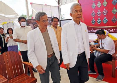 ทั้งนี้พระภาวนาประชานาถ (เจ้าคุณนุช) ที่ปรึกษาเจ้าคณะภาค 11 เจ้าอาวาสวัดบ้านไร่ เป็นประธานฝ่ายสงฆ์นำพระสงฆ์สมณศักดิ์เจริญชัยมงคลคาถาและสวดพระพุทธมนต์การทอดผ้าไตรบังสุกุล กรวดน้ำรับพร จากนั้นได้มอบเตียงปรับระดับไฟฟ้าให้โรงพยาบาลมหาราช นครราชสีมา เครื่องปรับอุณหภูมิลบชุดใหญ่ให้ รพ.ด่านขุนทด เครื่องวัดสัญญาณชีพให้ รพ.ลำสนธิ จ.ลพบุรี เครื่องปรับอุณหภูมิลบชุดเล็กให้ รพ.ชัยบาดาล จ.ลพบุรี และเครื่องตัดหญ้าให้โรงเรียนวัดบ้านไร่ ต่อมานายสุวัจน์ พร้อมคณะได้กราบบูชารูปเหมือนและอัฐบริขารหลวงพ่อคูณและเดินสำรวจสิ่งปลูกสร้างภายในวัดบ้านไร่ โดยมีผู้ช่วยศาสตราจารย์ ดร.อดิศร เนาวนนท์ อธิการบดีมหาวิทยาลัยราชภัฏนครราชสีมา (มร.นม.) และอาจารย์ประจำคณะวิชาการท่องเที่ยวและโรงแรม คอยให้ข้อมูลพื้นฐานเบื้องต้น