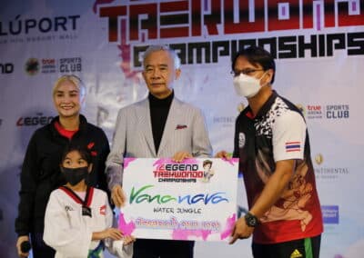 “ผมว่ากีฬา มองมุมไหนก็มีแต่ประโยชน์ ช่วยกันปลูกฝังเยอะๆ ภาคเอกชนทํา CSR เรื่องสิ่งแวดล้อม ทําได้หลายๆ เรื่องกีฬา ก็เป็นอีกเรื่องหนึ่งที่ได้ประโยชน์มากๆ อย่างวันนี้ ภาคเอกชน ศูนย์การค้าบลูพอร์ต หัวหิน ให้สถานที่จัด สวนน้ำ VanaNava สนับสนุนเอาบัตรมาแจก 500 ใบ ให้กับนักกีฬาทั่วประเทศที่มาแข่งขัน อันนี้ถือว่าเป็นความร่วมมือกันระหว่างภาคเอกชนที่จะมาช่วยวงการกีฬาแห่งชาติ แล้วก็สร้างอนาคตให้กับเยาวชน แต่อีกอย่างหนึ่งที่ขาดไม่ได้ก็คือ ผู้จัดการหรือโปรโมรเตอร์ อันนี้ต้องชมเชย คุณวิว-เยาวภา บุรพลชัย อดีตนักกีฬาเทควันโดทีมชาติไทย เหรียญทองแดงโอลิมปิค 2004 เมื่อก่อนกีฬาเทควันโด คนไทยไม่ค่อยรู้จัก แต่วันนี้คนไทยรู้จัก จนกระทั่งไปได้ “น้องเทนนิส” เทควันโด เหรียญทองโอลิมปิก ก็เพราะการจุดกําเนิดจากความสําเร็จของวิว เยาวภา เมื่อโอลิมปิก 2004”
