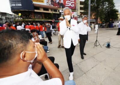 “ผมว่าเหมือนนักกีฬา เมื่อกติกาเปลี่ยนเราพร้อมจะเล่นหรือเปล่า การเมืองเป็นงานอาสา ถ้าเราพร้อมจะเล่น เราอยากได้ชัยชนะ เราก็ต้องวางแผนการเล่น ก็ต้องปรับยุทธศาสตร์ต่างๆ ให้สอดคล้องกับกฎกติกา แต่สำคัญที่สุดกฎกติกาก็ต้องเป็นธรรมกับทุกฝ่าย เพื่อให้ทุกฝ่ายมีคามรู้สึกว่าอยากเข้าสูสนามเลือกตั้งแล้วเมื่อตัดสินแล้ว แพ้ชนะ พี่น้องประชาชนตัดสินมาแล้วทุกคนยอมรับ เพื่อให้การเมืองมีเสถียรภาพ ไม่เกิด DeadLock ทางการเมือง นี่เป็นสิ่งที่สำคัญที่สุด ฉะนั้นวันนี้ผมคิดว่าการรักษาบรรยากาศดีๆ ความร่วมมือทางการเมือง ความรู้สึกว่าทุกอย่างเป็นธรรรมแล้วเข้าสู่สนามเลือกตั้งด้วยกัน ด้วยความรู้สึกอยากเข้าแก้ไจปัญหาให้กับพี่น้องประชาชนแล้วเลือกตั้งมาแล้วยอมรับผลแล้วมีความร่วมมือกัน สภา และ รัฐบาลทำงานได้ ฝ่ายค้านตรวจสอบได้ สิ่งนั้นจะเป็นสิ่งที่ดีที่สุดแล้วพี่น้องประชาชนจะสบายใจว่า การเมืองจะเป็นที่ที่หวัง ที่พึ่ง และเป็นทางออกให้กับประเทศได้