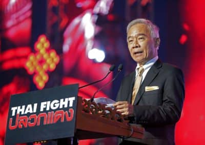 นายสุวัจน์ บอกว่าวันนี้โควิดยังไม่จบ เราต้องพยุงเศรษฐกิจอย่าเพิ่งจมน้ำตาย หาข่อนไม้ให้พี่น้องประชาชนได้ประทังไปก่อน ถ้าเราช่วยกันเสียสละ ใครมีเงินก็ลงทุนในประเทศไทย ใครพอมีเงินออกมาจับจ่าย ใช้สอย ใครพอมีเงินก็ออกมาเที่ยว เพื่อดึงเวลา จนถึงกลางปีหน้า เพราะกลางปีหน้าเมื่อทุกอย่างกลับมารีสตาร์ท นักท่องเที่ยวก็จะกลับมา โดยเฉพาะประเทศไทย เพราะประเทศไทยขณะนี้เป็นประเทศที่ทุกคนรอคอยว่าจบเมื่อไรจะมาก่อนเพราะเมืองไทยเรามีเสน่ห์ มีสถานที่ท่องเที่ยว อาหารการกิน โอทอป ทุกคนพูดเหมือนกันหมด มาเมืองไทยไม่มีโควิด มาเมืองไทยไม่มีโรคระบาด เมืองไทยมีสาธารณสุขดี คนไทยมีวินัย ใส่หน้ากาก ล้างมือ ฉะนั้น วิกฤตก็คือโอกาส อีกครั้งหนึ่งเราต้องอย่าให้โอกาสหลุดลอยมือ วันนี้ช่วยกันประคับประคองเศรษฐกิจ สร้างความรัก ความสามัคคี รักษาบรรยากาศของประเทศ ให้เกิดความเชื่อมั่นเหมือนกับการสร้างโครงสร้างพื้นฐานที่กำลังมีการขยายตัว มีการสร้างมอเตอร์เวย์ สร้างทางด่วน สร้างรถไฟฟ้า สร้างสนามบิน อันนี้คือโครงสร้างพื้นฐาน ที่สร้างความมั่นใจ แต่ความเรียบร้อยของสังคมไทยก็เป็นโครงสร้างพื้นฐานที่สร้างความมั่นใจ ผมคิดว่าถ้าคนไทย ร่วมไม้ ร่วมมือกัน จบโควิดไม่ต้องห่วงเลยเศรษฐกิจไทยจะกลับมารีสตาร์ท กลับมายิ่งใหญ่ โดยเฉพาะอย่างยิ่งเรื่องอุตสาหกรรมการท่องเที่ยว เพราะมันจะเป็นการเปิดพื้นที่ใหม่ให้ขยายจากพัทยาไป ระยอง จันทบุรี ตราด เกาะช้าง เพราะเมืองไทยเป็นเมืองท่องเที่ยวอยู่แล้ว อันนี้เราก็ต้องช่วยกัน อย่างวันนี้ เรามาจัดมวยไทยไฟท์ ปลวกแดง มีวัตถุประสงค์เพื่อนำเอาความสุขมามอบให้กับคนไทย มาให้กำลังใจและมาช่วยกระตุ้นเศรษฐกิจ วันนี้มีพ่อค้า แม่ขาย เป็นร้อยๆ คน คนมาเป็นพันๆคน ก็มามีความสุข มารักเมืองไทย เห็นมวยไทย แล้วนึกถึงชาติไทย นึกถึงประวัติศาสตร์ มีความห่วงแหน ฉะนั้น มาดูมวยไทยไฟท์ รู้สึกรักชาติบ้านเมือง รักมวยไทย และมีความสุข และทุกคนก็ออกมาเที่ยวใช้จ่าย นี้ก็กระตุ้นเศรษฐกิจ และเป็นการเสริมสร้างภาพลักษณ์ ประชาสัมพันธ์ประเทศไทยด้วย ก็ถือว่าเป็นกิจกรรมกีฬา ที่มาสนับสนุนเรื่องการเชื่อมั่นและการลงทุน และการท่องเที่ยว